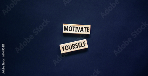 Motivate yourself symbol. Concept words Motivate yourself on beautiful wooden blocks. Beautiful black table black background. Business psychology motivate yourself concept. Copy space.