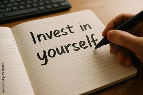 motivational inspirational concept ,open book, handwritten text "Invest in yourself"