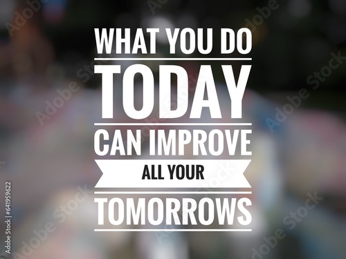 Motivational quote "What you do today, can improve all your tomorrows" on blurred abstract background.