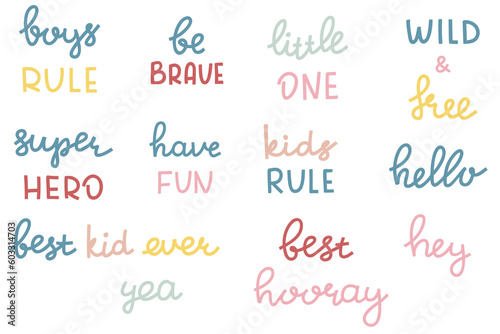 Motivational quotes collection. lettering stickers, badges, prints for kids. Vector cute style inspirational illustrations