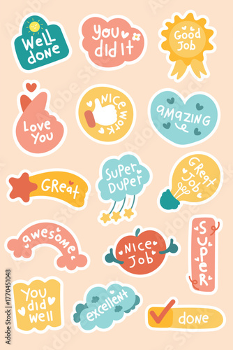 Motivational sticker pack with cute colorful phrases for journal or daily planner sticker