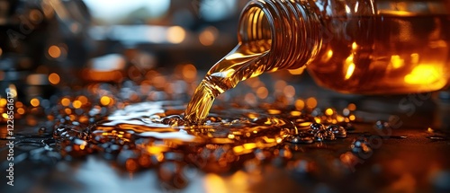 Motor Oil Pouring into Engine for Car Maintenance and Service