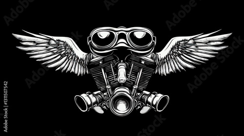 Motorcycle engine with wings, graphic design, for apparel or merchandise