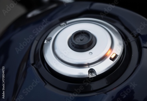 Motorcycle Fuel Tank Close-Up: Chrome and Blue