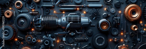 Motorcycle repair banner with detailed engine parts