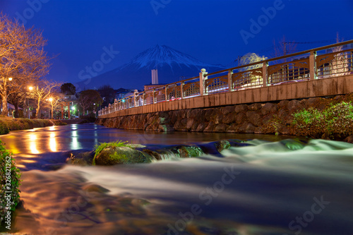 Mount Fuji Fujinomiya night panorama with river