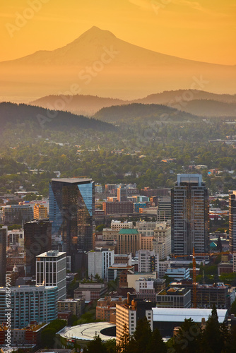 Mount Hood and Portland Skyline at Golden Hour
