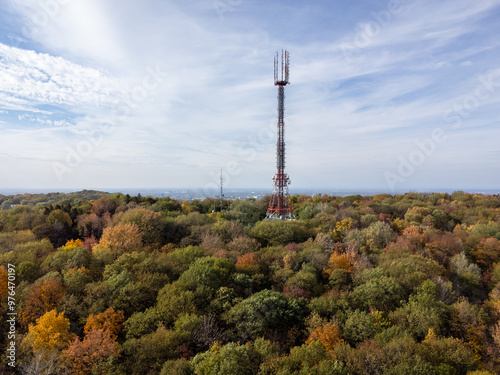 Mount Royal Broadcast Tower, Transmission Tower, Radio and Television Transmitter Tower. Montreal, Quebec, Canada.