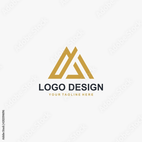 Mountain abstract logo design vector. Triangle abstract icon illustration. Letter AM logo design.