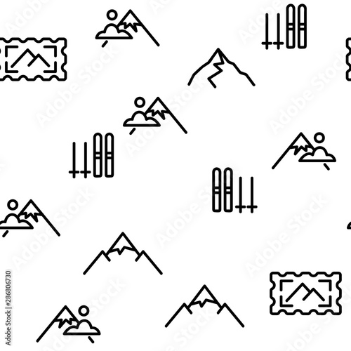 Mountain Alps Seamless Pattern Vector Contour Illustration