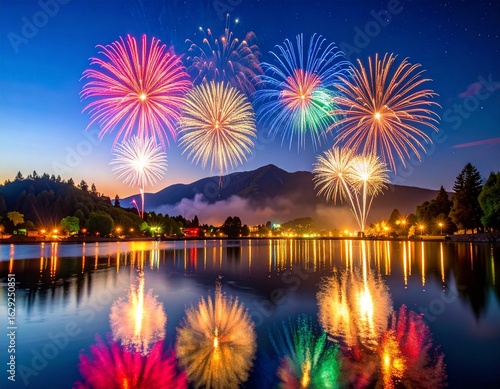 Mountain and Sea Nightscape with Stunning Aerial Fireworks | Beautiful Summer Fireworks Reflected on Water Surface in Japan