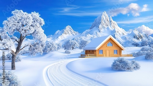 Mountain cabin, remote location perspective, proportional design, 3D illustration