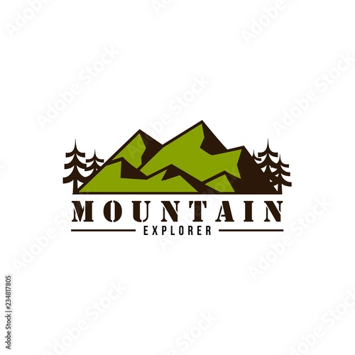 Mountain Explorer Adventure Logo, Icon, Sign Badge Vector Template Design
