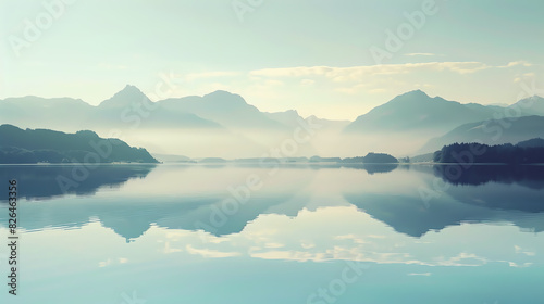 mountain lake, crystal clear water, peaceful reflection, pristine environment, close up, focus on, copy space, Double exposure silhouette with mountains