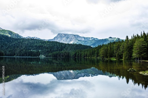 Mountain lake, evergreen coniferous forest, Durmitor, Montenegro