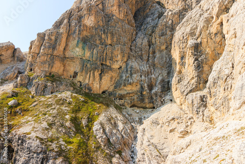 mountain landscape with blue sky lagazuoi dolomites world war one ruins