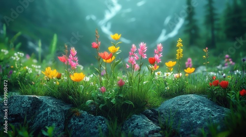 Mountain meadow wildflowers sunrise scenic nature