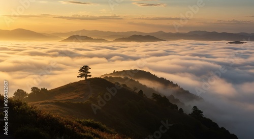 Mountain Peak Rising Above the Morning Mist in Golden Light