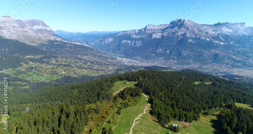 Mountain range of the Alps, with the peak of Mont Blanc, aerial view France