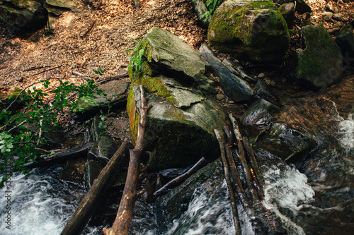 Mountain river in the Carpathian mountains, the stones in the ri