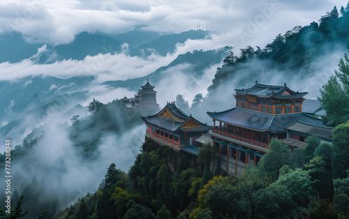 Mountain scenery in Sichuan, China,created with Generative AI tecnology.
