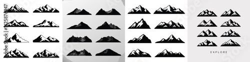 Mountain Silhouette Icons Collection, Adventure and Outdoor Landscape Design Elements on White and Gray
