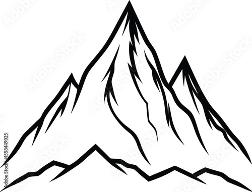 Mountain Silhouette Line Art Vector Illustration On White Background