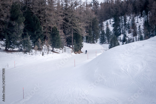 Mountain skiing - panoramic view at the ski slopes Aosta Valley, Italy .