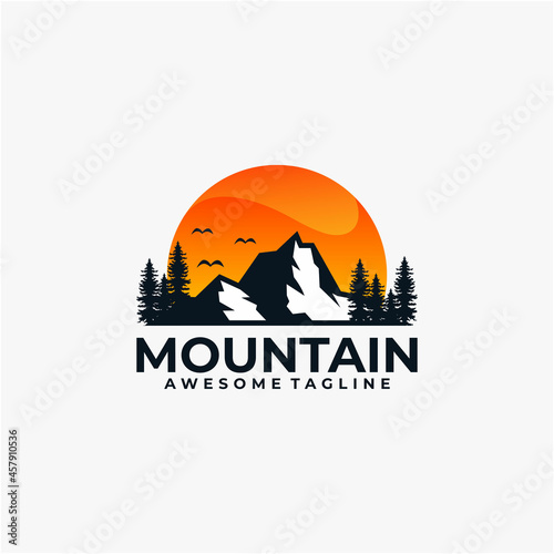 Mountain sunset logo design vector