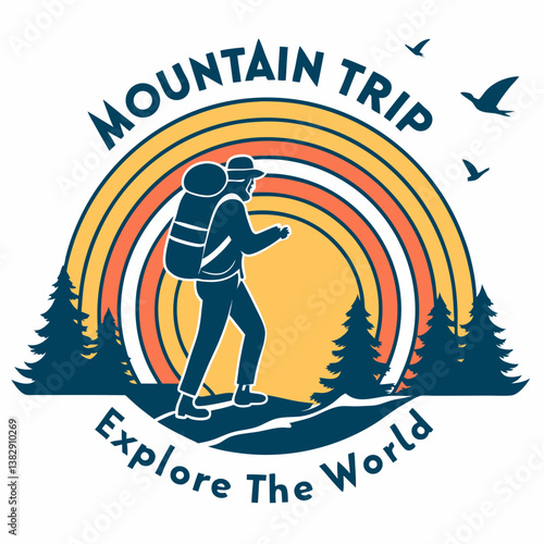 Mountain Trip With Hiker Adventure And Explore The World Vector Illustration