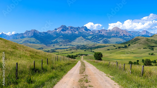 Mountain Valley Dirt Road Summer Landscape (1)