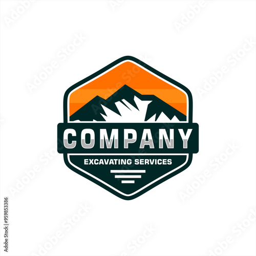 mountain vector logo design with hexagonal emblem, mountain logo design, emblem and mountain design, badge, mountain graphic, sport, panorama, camp logo design, outdoor, adventure, landscape