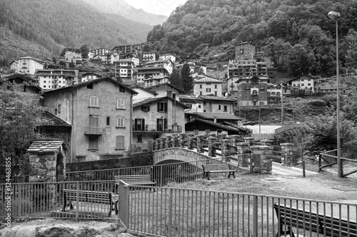 Mountain village. Black and white photo