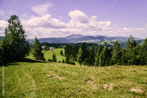 Mountain village landscape in the wild Ukrainian Bukovyna area