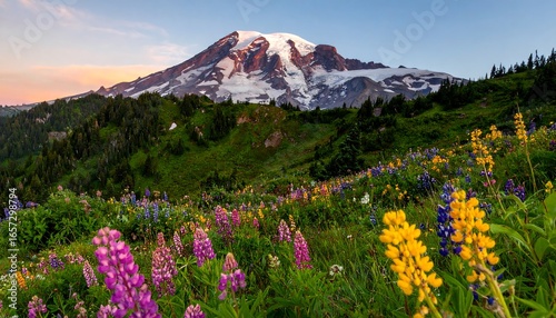 Mountain wildflowers at sunset