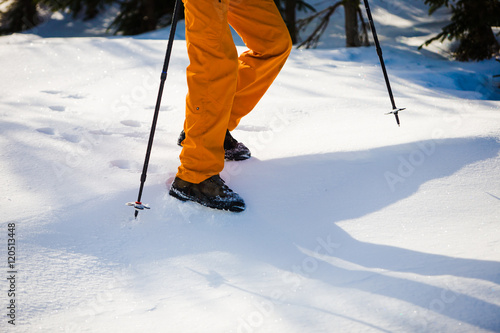 Mountaineer walking on snow.