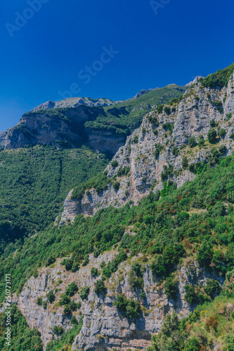 Mountains and cliffs of Amalfi Coast from Path of the Gods, near Positano, Italy