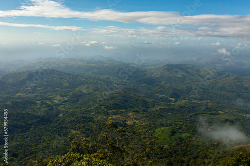Mountains and green hills in Sri Lanka. Slopes of mountains with evergreen vegetation. Lipton's Seat.