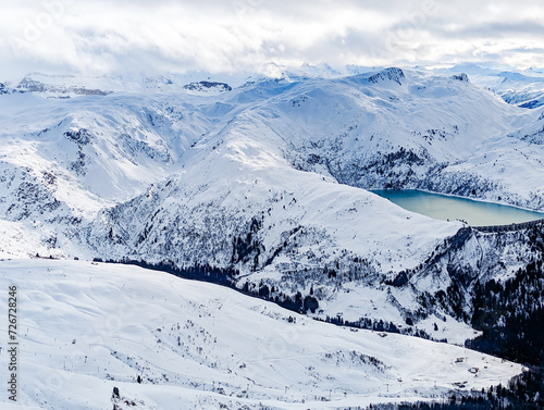 Mountains and skiing in Les Contamines, French alps.