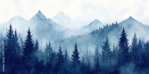 Mountains landscape with pine forest in winter time