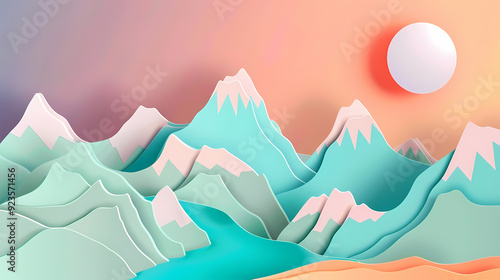 mountains landscape.3d Paper cut abstract minimal nature scene, template background.Vector illustration.