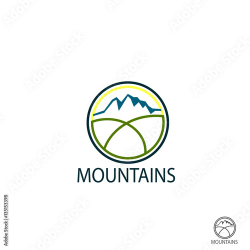 Mountains logo, Icon in color. Climbing label, hiking travel and adventure