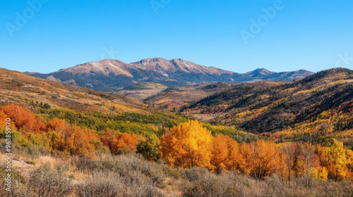 Mountainside with Vibrant Autumn Foliage and a Clear Blue Sky