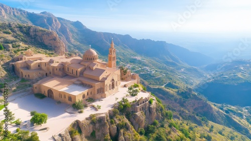 Mountaintop monastery: panoramic aerial view