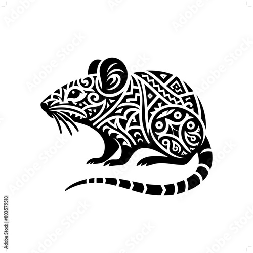 mouse, rat silhouette in animal ethnic, polynesia tribal illustration