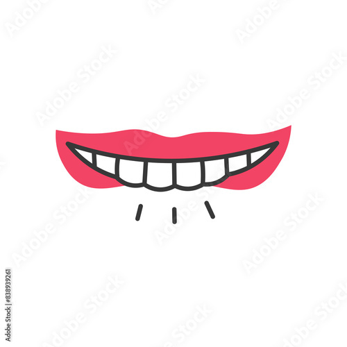 Mouth Biting Lip. Facial emotion expression with white teeth. Isolated vector illustration.