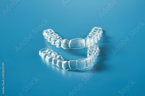 マウスピース、歯科矯正のコンセプトイメージ、青背景|Mouthpiece, orthodontic concept image, blue background