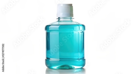 Mouthwash Bottle, Blue Liquid, White Background