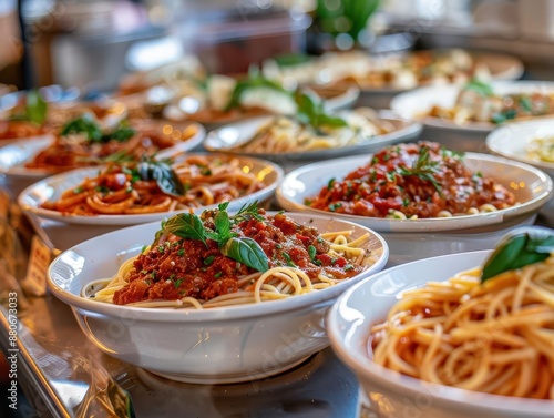 mouthwatering array of perfectly plated spaghetti bolognese dishes rich red sauce glistening atop al dente pasta garnished with fresh herbs