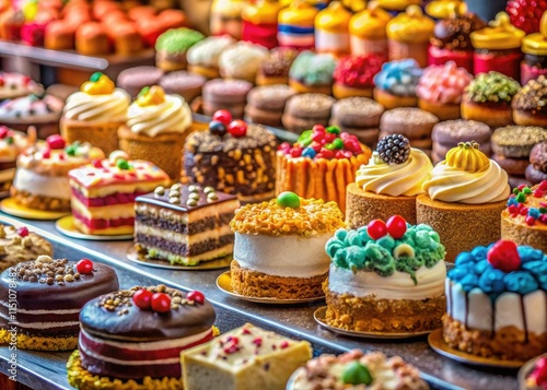 Mouthwatering cakes and pastries beckon from a vibrant market stall.